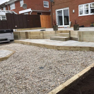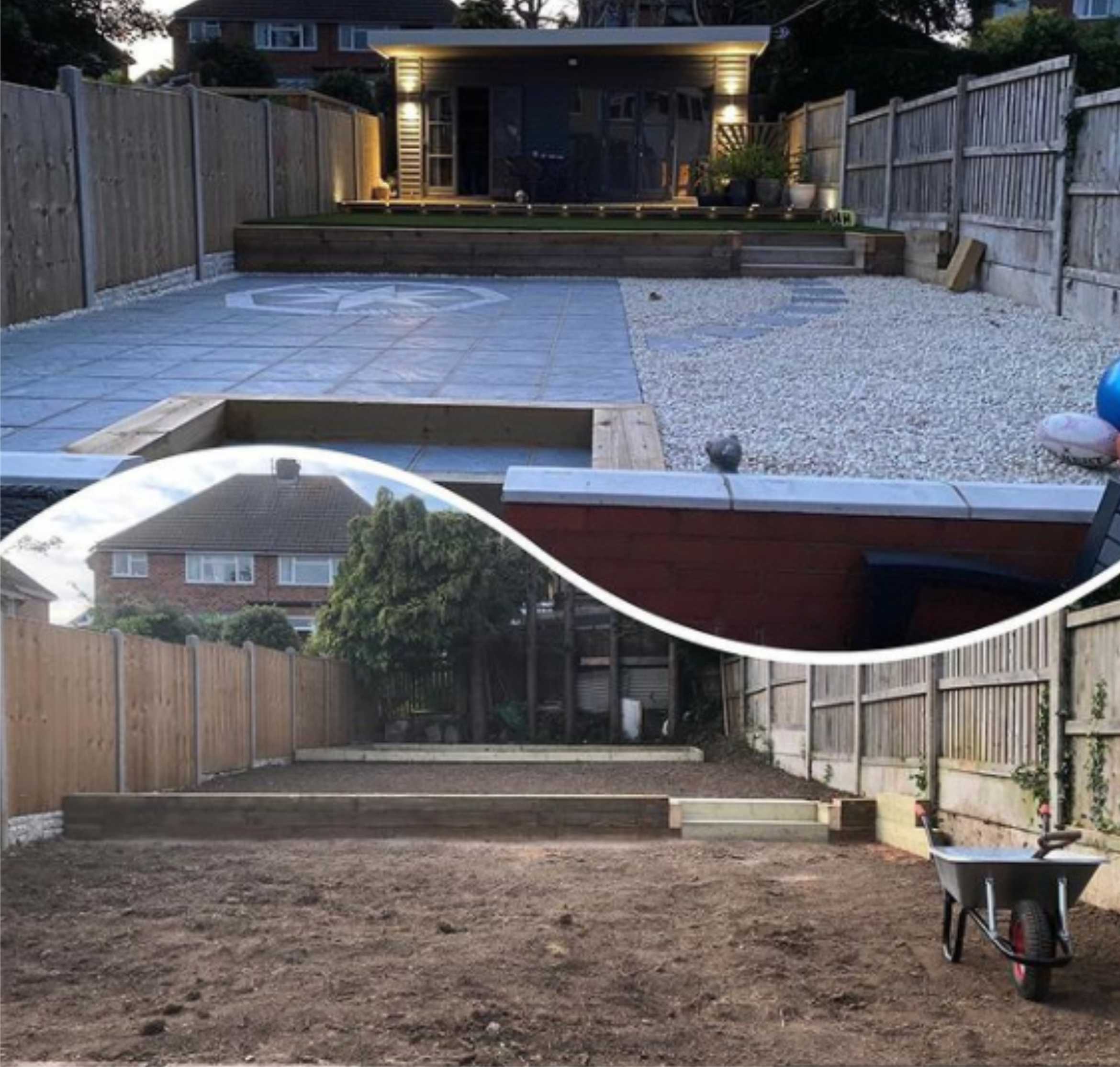 Domestic and commercial patios & pathways, fencing, metal railings, decking, sleeper beds and retaining walls, turf laying, artificial grass & much more.